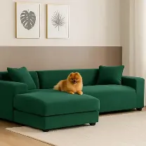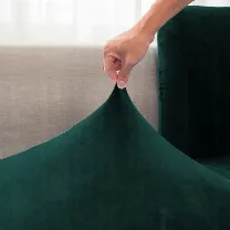 Połączenie poliestru i spandexu zapewnia sprężystość, odporność na mechacenie oraz idealne dopasowanie do narożnika. Welurowa struktura dodaje wnętrzu ciepła i elegancji, a wszyte gumki gwarantują stabilność nawet przy intensywnym użytkowaniu.